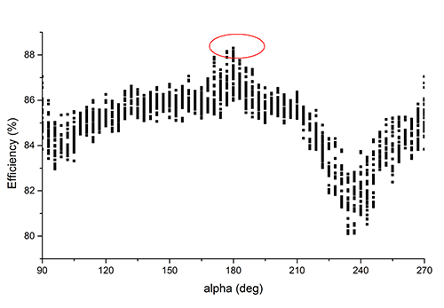由图中数据可见风向偏转对年等效满发小时数影响之大,方案2最终成为最优机位排布方案。