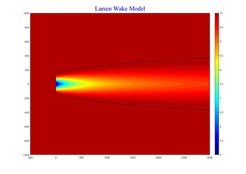 目前,机位排布主要通过经验公式计算尾流场分布,不同的经验公式计算得出的尾流场有极大偏差。下图为Jensen尾流模型与Larsen尾流模型计算得出的尾流场分布,呈现出了不同的结果。经验公式所描绘的尾流场分布与海上风场实际尾流分布不一致是导致风场实际发电量与计算发电量偏差较大的主要原因。