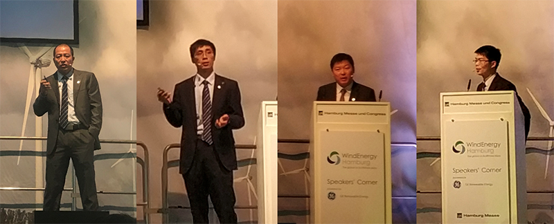 2017年欧洲陆上风电市场发布的风机产品出现了明显的转型趋势,大兆瓦风机产品得到青睐,全球风机加速向大兆瓦迭代。多年前便着手推进大风机战略的明阳智能在汉堡展上分享了大风机发展的实践经验,展示其挖掘风资源潜力的“利器”——MySE半直驱系列产品,与国际同仁探讨大兆瓦智慧风机技术,展示大数据云平台应用开启风电场运维的智慧模式场景。